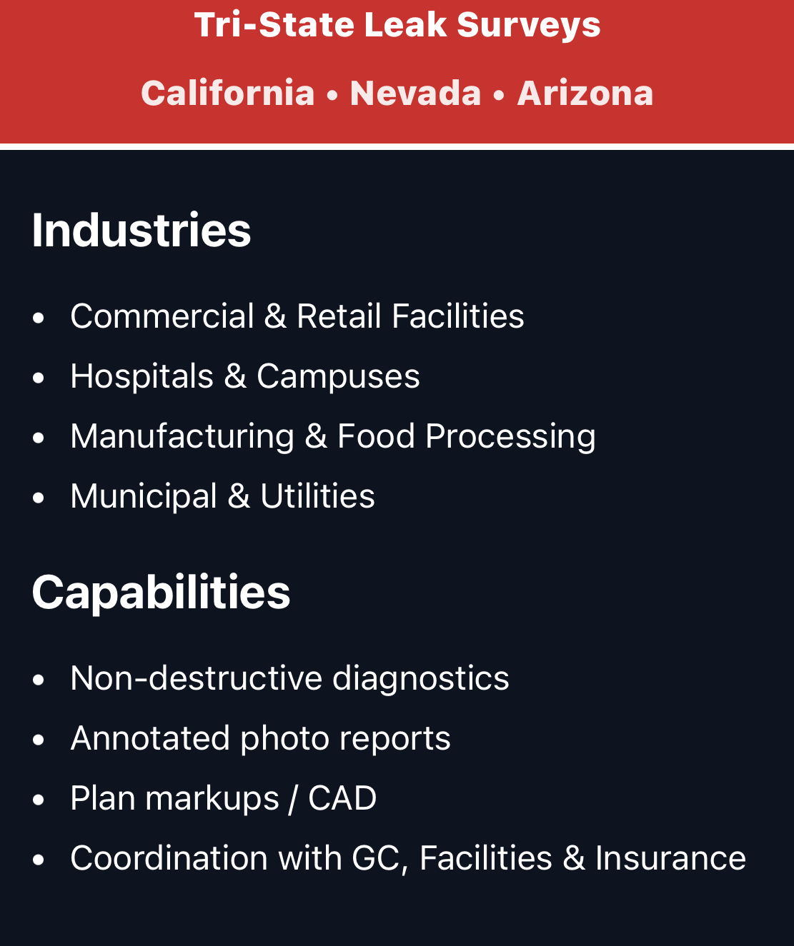 Ground Penetrating Radar Leak Surveys Sitemap